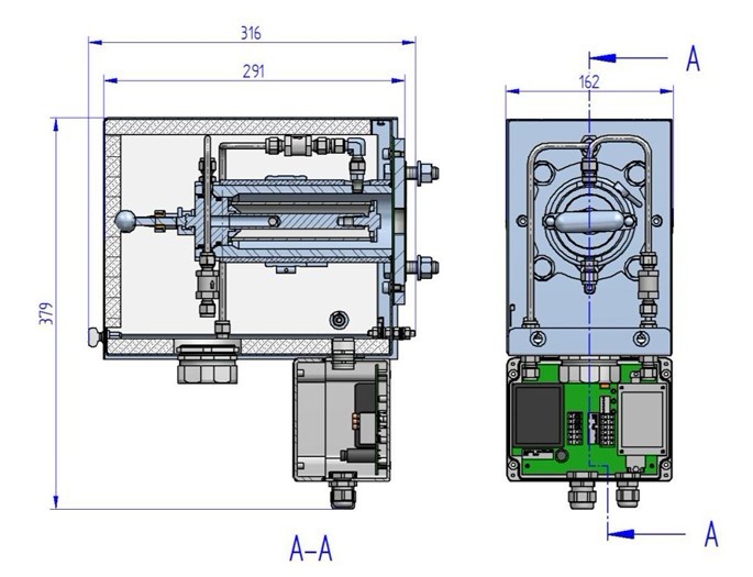 技術(shù)規(guī)格 技術(shù)規(guī)格 可選配:表面外膜0,2µm 能量功耗 約505 W 操作壓力 最大200 kPa abs 加熱元件 約500W 可選配:最大700 kPa abs 溫度傳感器 PT100 流量 600Nl/h 電源 230VAC / 50Hz 定位凸緣 DN 65, PN6; DIN 2573; SS316 可選配:115VAC / 60Hz 可選配:2“ ANSI-flange, 150lb. 接線盒 120 x 160 x 90 mm (WxHxD) 安裝角度 推薦 5°-15°,有利于冷凝物排水 電氣連接 鉗夾最大2.5 mm² 進(jìn)氣口 G3/4“母螺紋 開關(guān)報(bào)警及電器 Typ. 230VAC/2A/min. 5VADC/5mA 出氣口 1/8“ NPT母螺紋 防護(hù)等級(jí) 電子IP65 測(cè)試氣口 6mm SS316隔壁直通 探針IP43 反沖氣口 6mm SS316隔壁直通 外殼 鋼板,黑色啞光處理 接液部件 1.4571, SiC, Viton® (FKM) 重量 約11 kg 溫度調(diào)節(jié)范圍 5 ... 200°C 尺寸 160 x 350 x 290 mm (WxHxD) 可選配:5 ... 315°C 工廠安裝環(huán)境 180°C