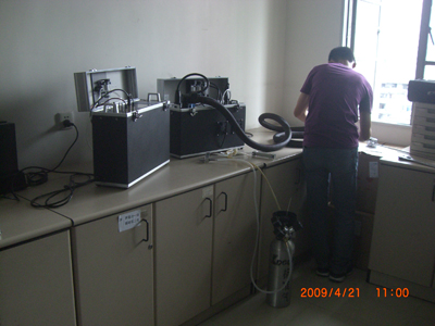 采用紅外方法對電廠污染源排放檢測一直是被業(yè)界需求和認(rèn)可的。目前的電化學(xué)為主的模式將很快被替換。做為國內(nèi)發(fā)達(dá)地區(qū)的廣東省,對先進(jìn)測量方法和技術(shù)非??是螅聢D是環(huán)保中心技術(shù)人員對我們的紅外煙氣分析儀進(jìn)行模擬現(xiàn)場低濃度環(huán)境(幾個ppm的SO2,NO)測試,并且非常得到結(jié)果是非常精確和重復(fù)性十分穩(wěn)定。